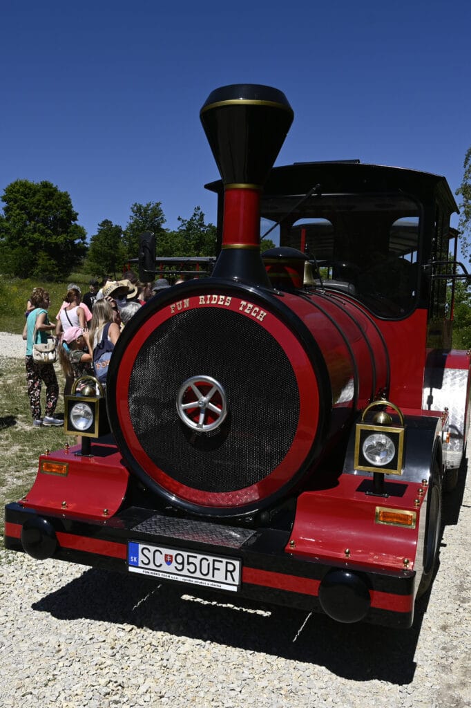 Vláčik, ktorý priviezol turistov k hradu. Foto: TASR