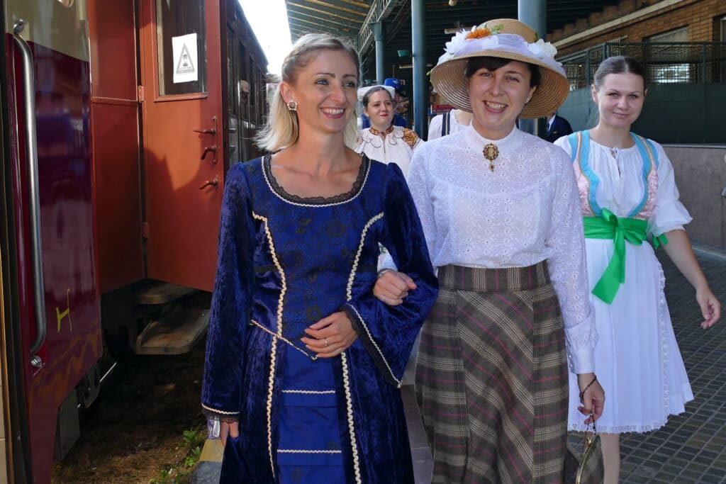 Atmosféru vo vlaku spríjemnia cestujúci v dobových kostýmoch. Foto: TASR