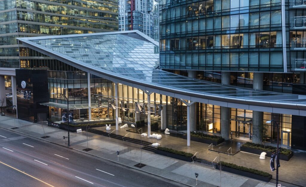 Vancouverský developer Holborn Group, ktorý vlastí 188 metrov vysokú budovu s presklenou fasádou a 69 poschodiami, získal licenciu na meno Trump na základe dohody z roku 2013. Otvorenie Trump International Hotel na začiatku roka 2017 sprevádzali protesty proti prezidentovi Donaldovi Trumpovi. TA Hotel Management Ltd Partnership si hotel prenajala a prevádzkovala.