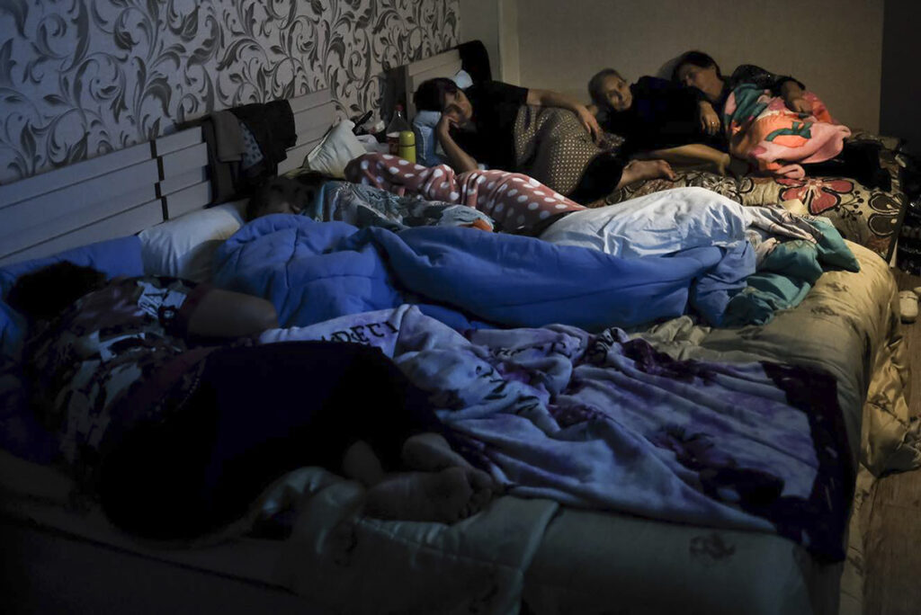 Ľudia sledujú štátnu televíziu v bunkri, v ktorom sa skryli pred ostreľovaním v Stepanakerte, hlavnom meste Náhorného Karabachu. Foto: TASR/AP