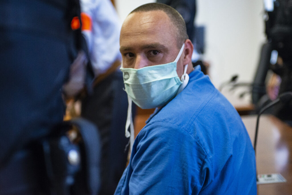 obvinený Roland Sz. prichádza na hlavné pojednávanie.