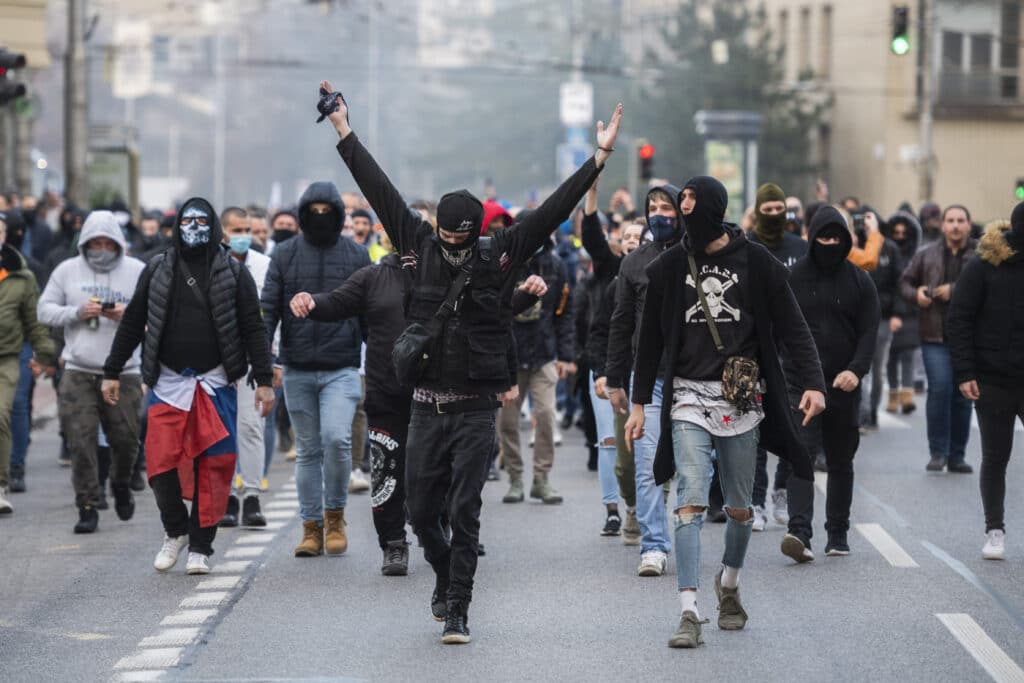 Pred úradom vlády boli umiestnené mobilné zábrany, ktoré ho oddeľujú od Námestia slobody. Futbaloví ultras fanúšikovia hádzali v týchto miestach delobuchy a snažili sa zhodiť aj zábrany. Na mieste sa nachádzali aj policajti na koňoch.