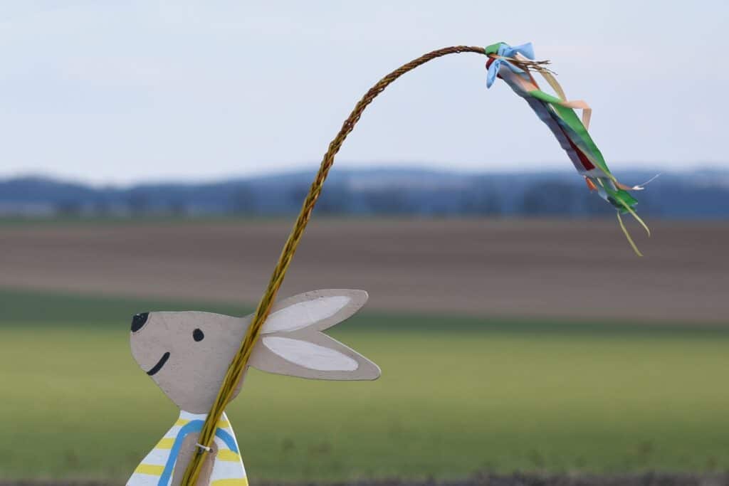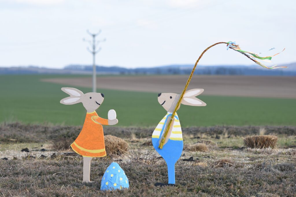 Veľkonočné zajace s vajíčkom na kruhovom objazde v Senici. (Foto: TASR)