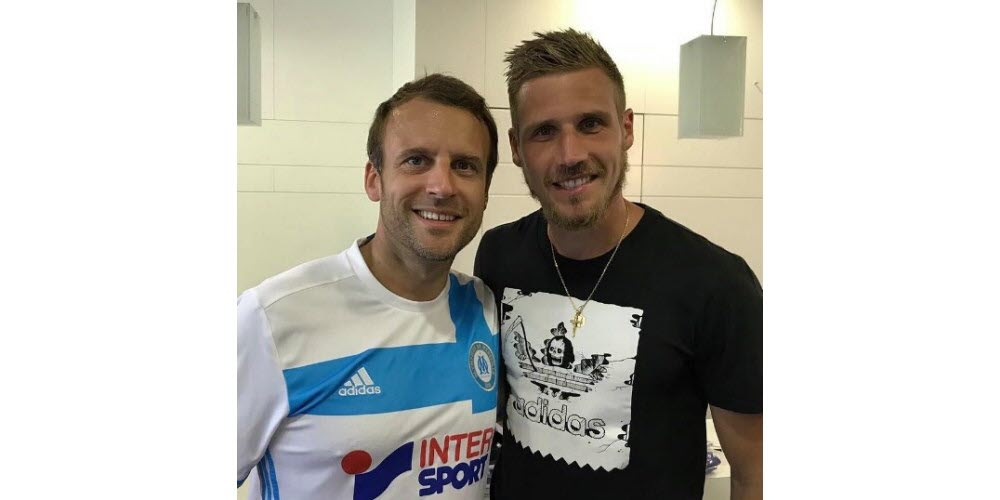 francúzsky prezident Emmanuel Macron vo futbalovom drese (Foto: instagram G. Sertic)